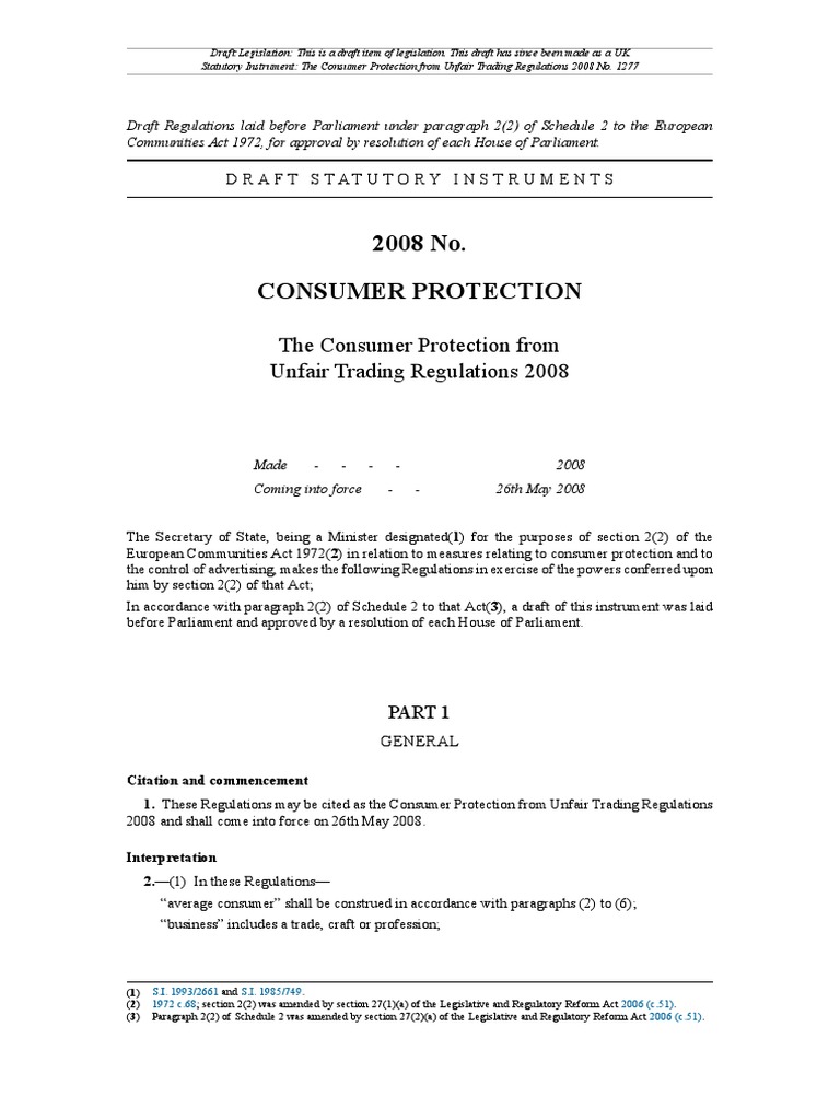 The consumer protection from unfair trading regulations protects you from unfair practices and ban misleading and aggressive sales tactics. Consumer protection from unfair trading regulations 2008. The consumer protection from unfair trading regulations 2008.